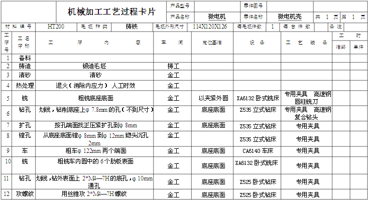 微型電機(jī)殼工程加工卡
